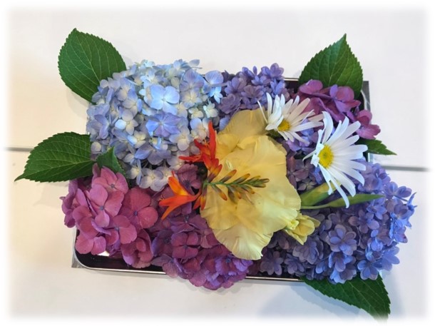 テーブルの上にはスタッフ作成の綺麗な飾り花