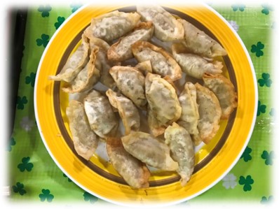 三道山子ども食堂名物「牛タンカレー」に揚げ餃子のトッピングとサラダ