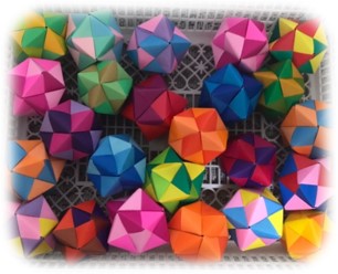 今回のおみやげはスタッフ手作りの折り紙(右)