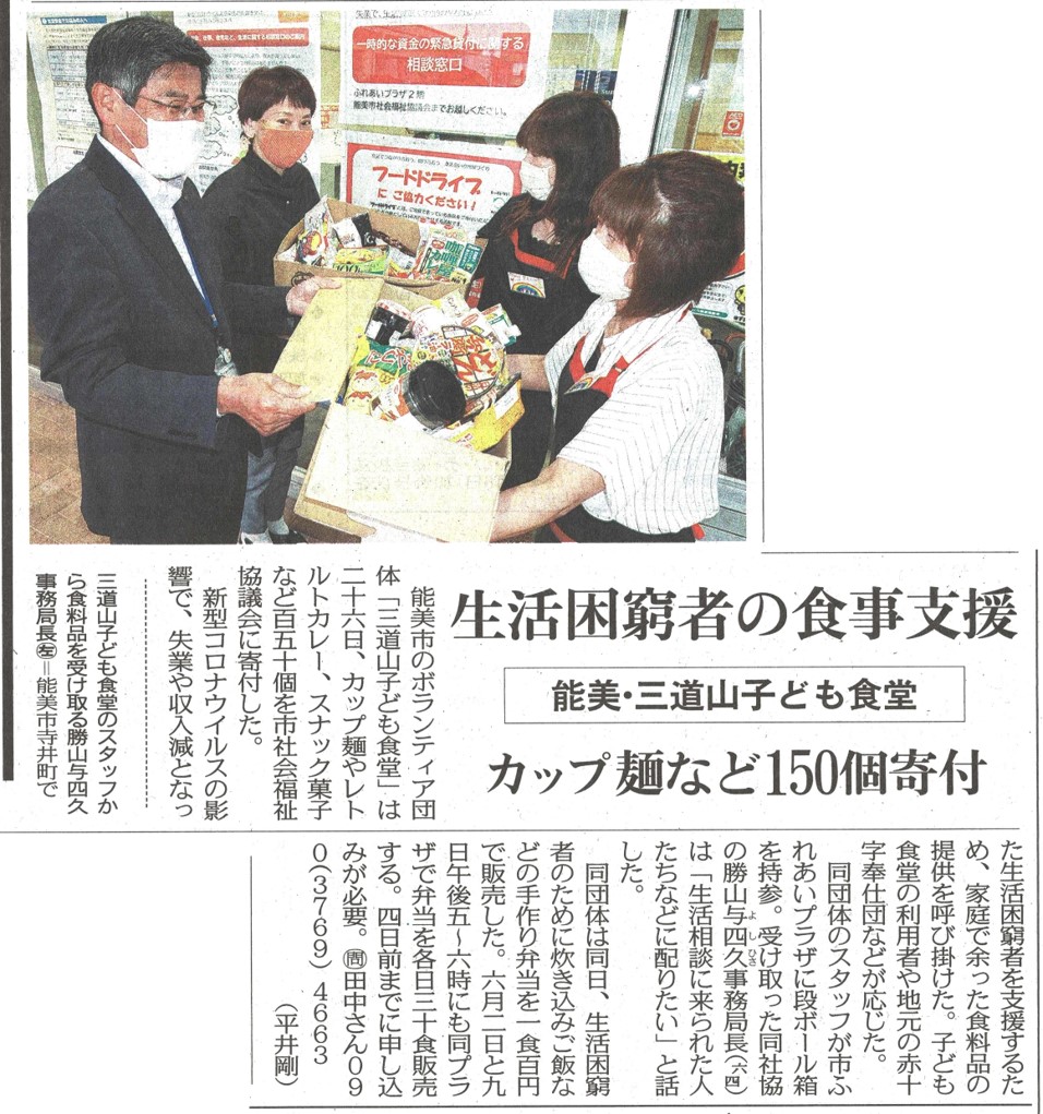能美市社会福祉協議会と連携し、新型コロナウィルスの影響を受け生活改善に努力している